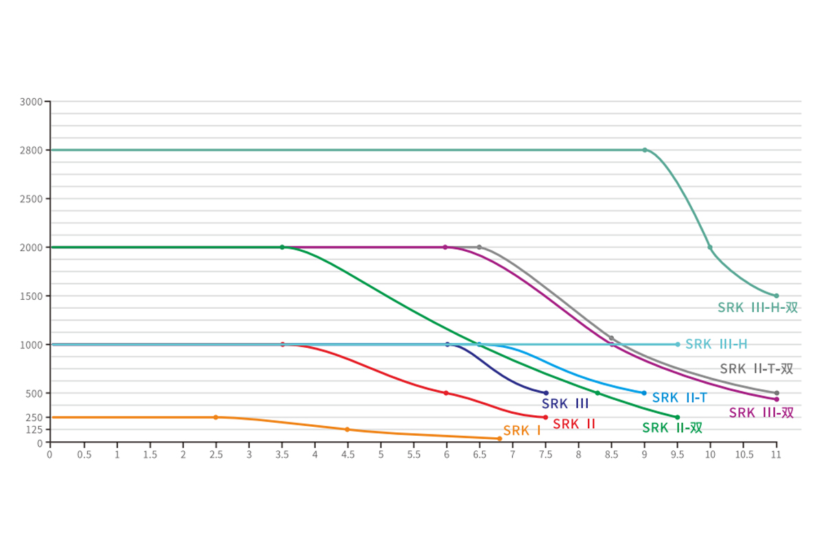 ■ Adaptável aos tipos de pista SRKII e SRKIII. Este projeto de carrinho duplo é usado quando as cargas são maiores.