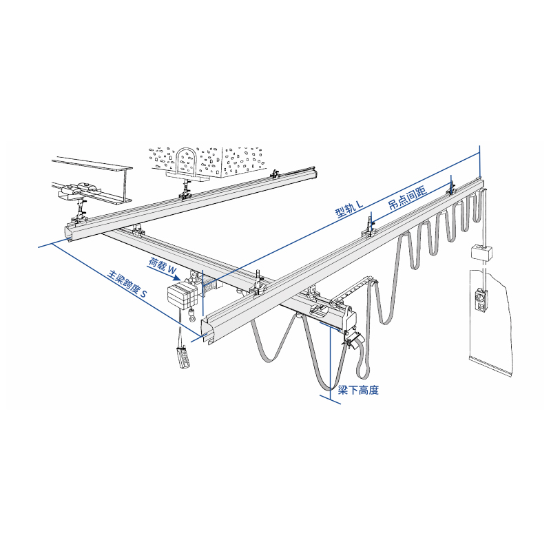 ·Altura da viga: Refere-se à altura da viga principal onde o carrinho está suspenso na talha (para estruturas independentes, geralmente é calculada a partir do solo ou do ponto de apoio da coluna).
