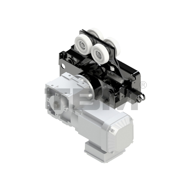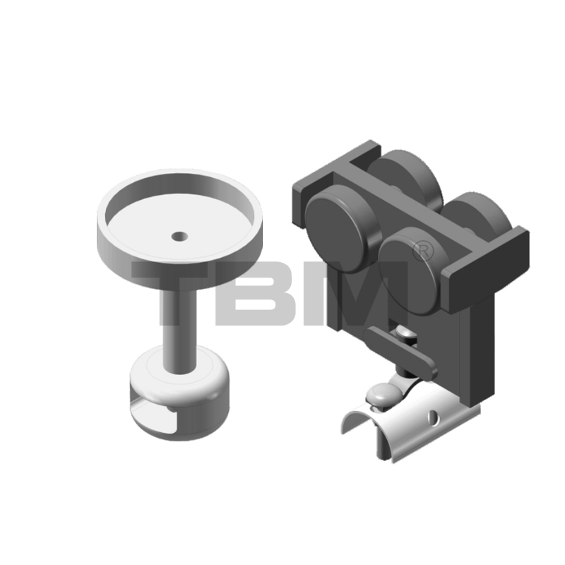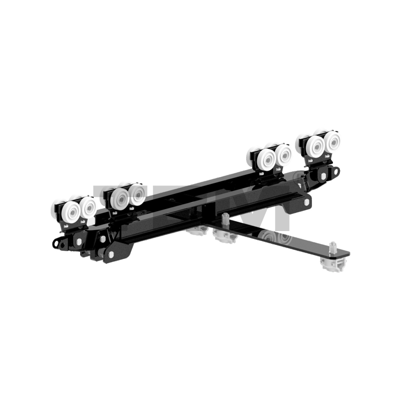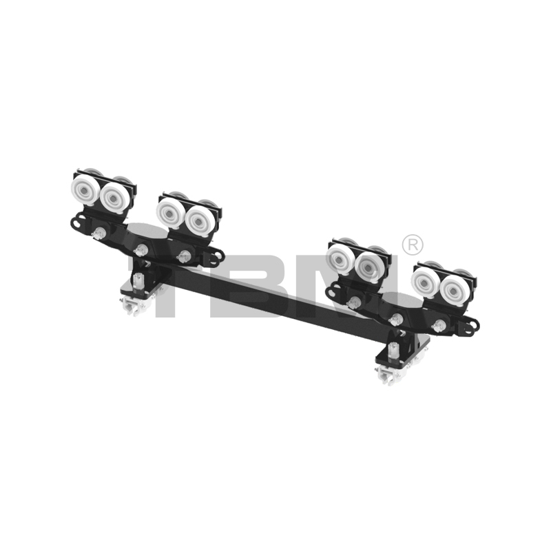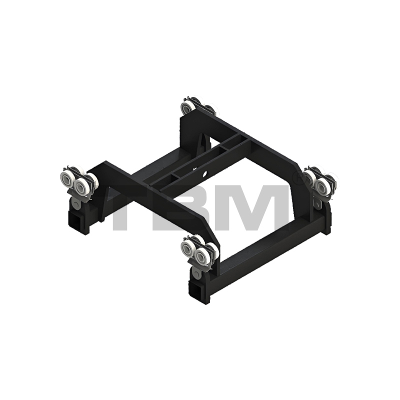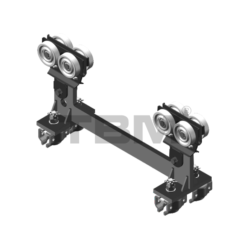 [As rodas do carrinho são feitas de nylon de alta resistência com um ângulo de roda específico, ajustando-se perfeitamente à banda de rodagem. O carrinho centraliza automaticamente durante a operação. O carrinho está equipado com uma estrutura de roda guia para evitar atrito com as aberturas dos trilhos e aumentar a resistência ao movimento. Duas asas posicionadas horizontalmente garantem que o carrinho não caia dos trilhos em caso de mau funcionamento, garantindo totalmente a segurança.]
