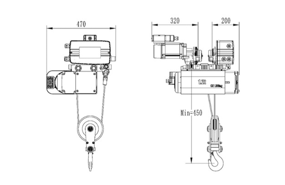 | Tipo | FEM | Carregar (kg) | HoL (m) | Velocidade de elevação (m/min) | Motor de elevação (kW) | Velocidade de viagem (m/min) |
